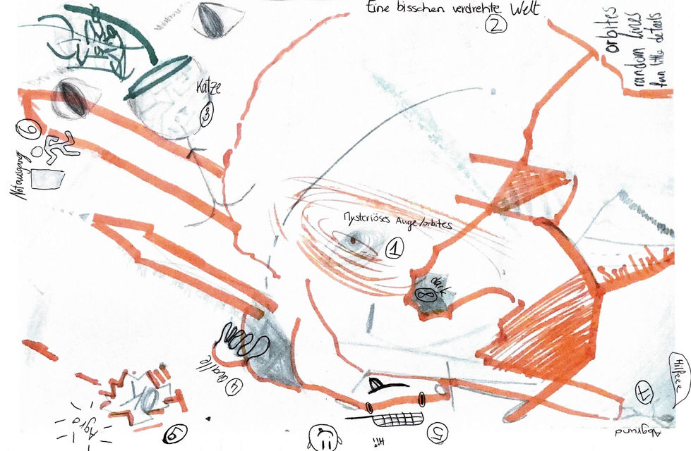 A duet drawn from memory: re-sketching reopens a performative score shaped by lines, bodies, and time. What once was solo becomes shared — a choreography between remembering and transforming.